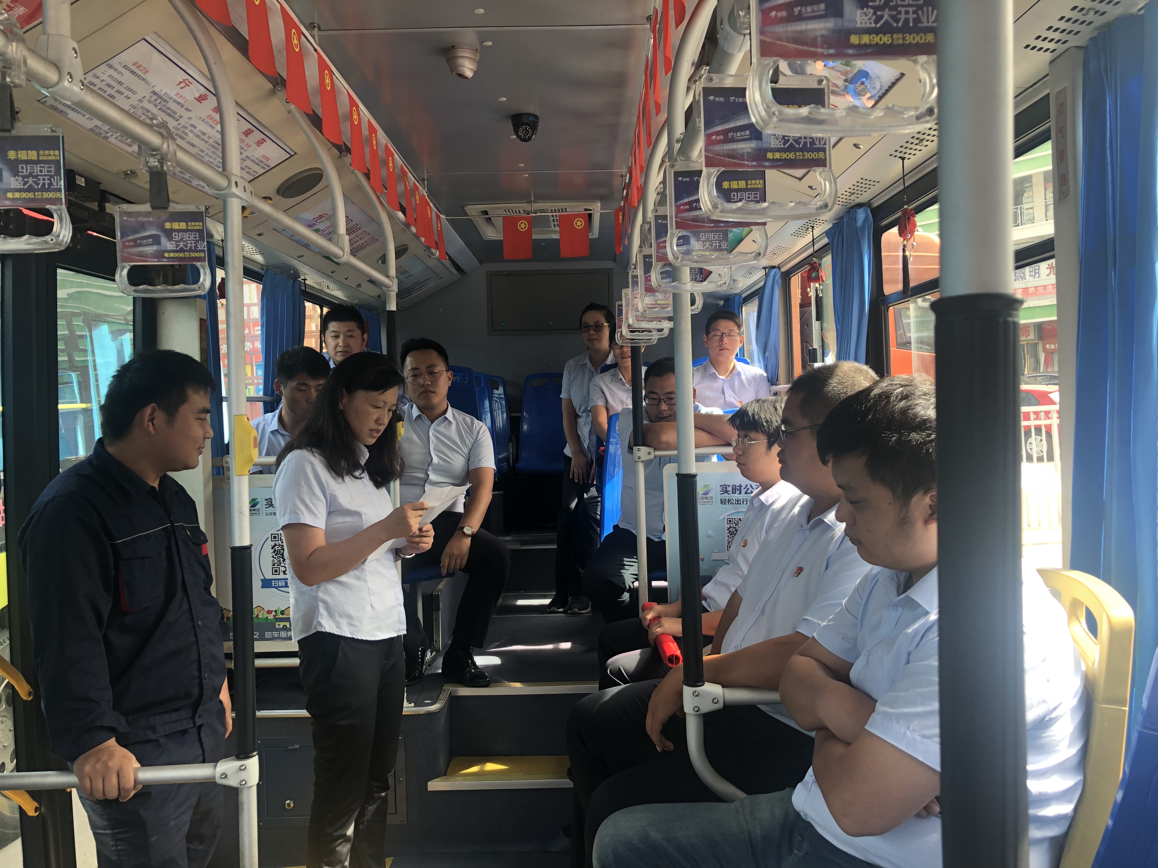 活動(dòng)中,支部黨員首先走進(jìn)車廂帶動(dòng)一線駕駛員學(xué)習(xí)集團(tuán)黨委“不忘初心、牢記使命”主題教育動(dòng)員會(huì)議精神,并在公交車廂進(jìn)行重讀入黨志愿書(shū)活動(dòng),重溫入黨承諾。隨后,支部黨員兩人一組組成志愿隊(duì),在310路共青團(tuán)示范線上進(jìn)行跟車文明勸導(dǎo),主動(dòng)攙扶老弱病殘?jiān)猩舷萝?,積極引導(dǎo)乘車市民文明排隊(duì)、有序乘車。跟車的黨員志愿者還帶領(lǐng)310路駕駛員沿線檢查站牌標(biāo)識(shí)內(nèi)容有無(wú)缺失并清理沿線站臺(tái)內(nèi)小廣告,為廣大市民創(chuàng)造良好的公交出行環(huán)境。另外一組由安全技術(shù)管理部、營(yíng)運(yùn)管理部、修理公司組成的突擊小分隊(duì)對(duì)站點(diǎn)車輛安全狀況進(jìn)行排查,以實(shí)際行動(dòng),防風(fēng)險(xiǎn)、除隱患、迎大慶。