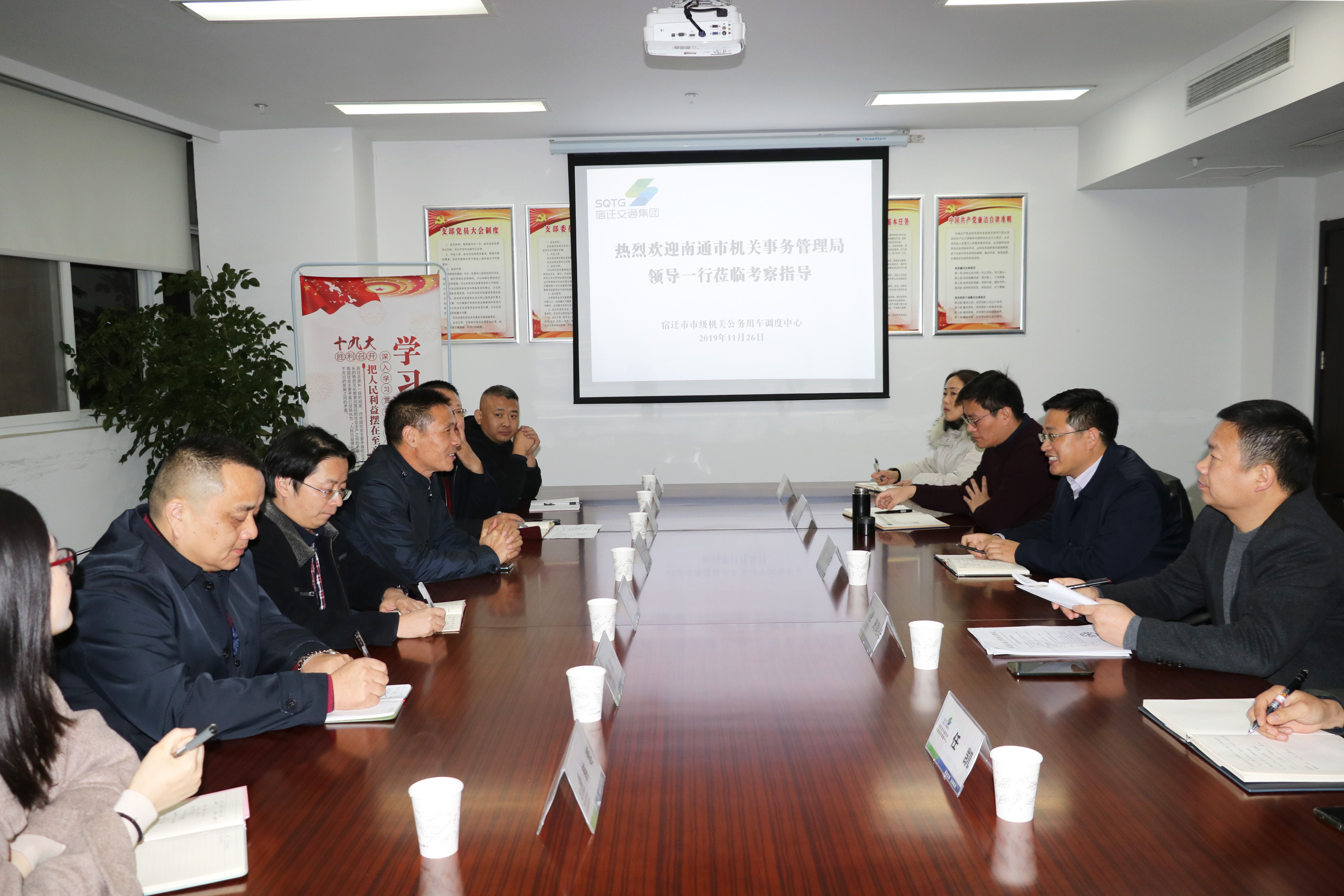 11月26日下午,南通市機(jī)關(guān)事務(wù)管理局黨組成員王炳發(fā)一行到市公車調(diào)度中心考察交流,市機(jī)關(guān)事務(wù)管理局副局長丁健倫、公車調(diào)度中心主任程秋稚等相關(guān)同志參與座談交流。