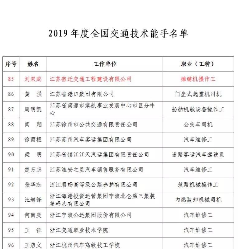 近日,由國(guó)家交通運(yùn)輸部組織開(kāi)展的2019年度全國(guó)交通技術(shù)能手評(píng)選結(jié)果出爐,宿遷交建劉雙成被授予2019年度“全國(guó)交通技術(shù)能手”稱號(hào),也是宿遷市唯一獲此殊榮的選手。