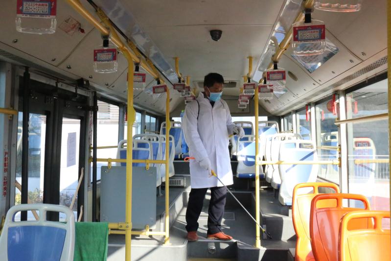 施俊永從早忙到晚,每天在完成自己的營運(yùn)任務(wù)后就換上隔離服,帶上防護(hù)帽,對每輛進(jìn)場的公交車輛逐一擦拭扶手、欄桿、座椅,噴灑消毒水,擦拭地板,確保車輛消毒不留死角。每當(dāng)劉玉榮營運(yùn)結(jié)束回到站內(nèi),看著丈夫一遍遍擦拭扶手、噴灑地板的身影就感到心疼;而施俊永也擔(dān)心妻子的自身防護(hù),每次在為劉玉榮的車輛消毒時,總要幫她整理一下口罩,反復(fù)叮囑幾句,小小的公交車廂成了夫妻兩人傳遞愛與溫暖的紐帶。他們就這樣默默堅守著自己的工作崗位,迎來送往,無私奉獻(xiàn),奮戰(zhàn)在服務(wù)乘客和抗擊疫情的公交第一線。