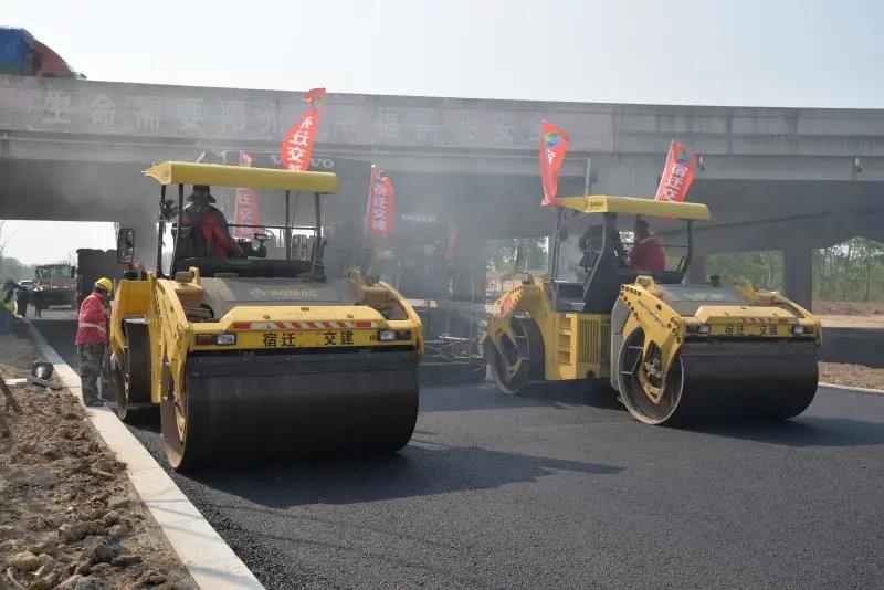 4月25日,宿遷交建承建的宿豫順興線EPC項目順利完成瀝青下面層首件工程施工,進入瀝青路面施工新階段,距5月底全面建成通車目標更近了一步。