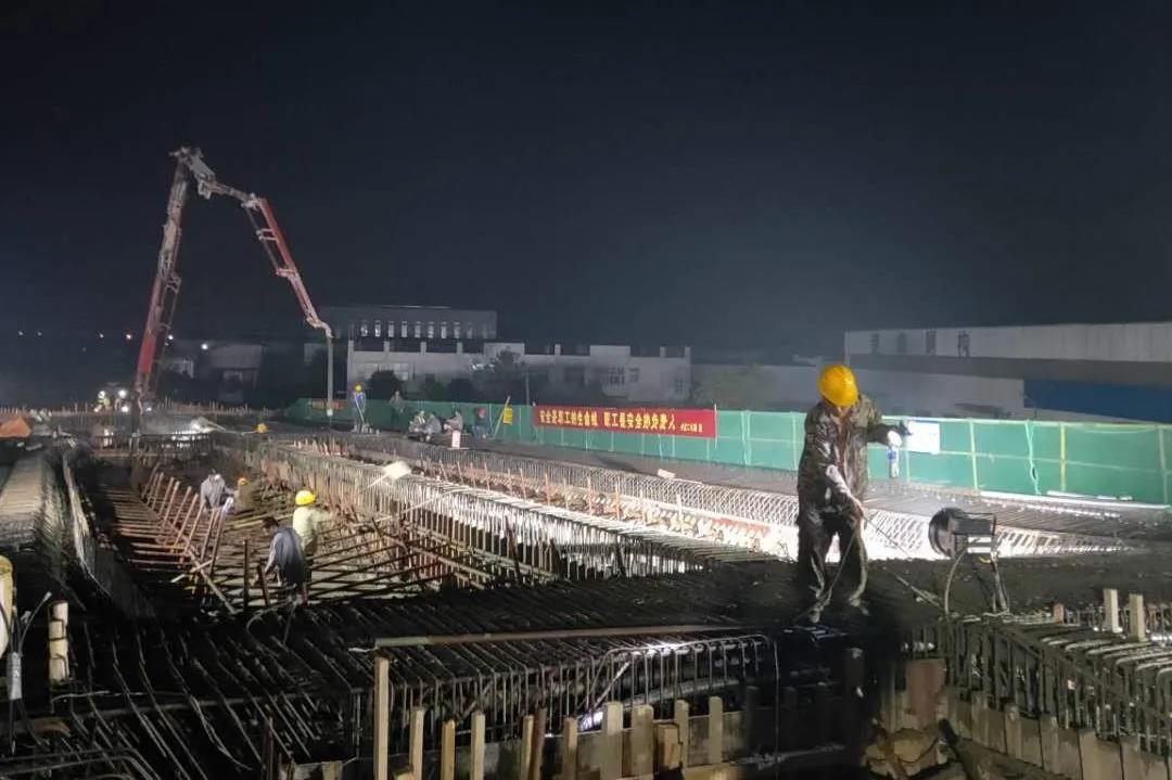 8月29日早上6:40,經(jīng)過11個小時奮戰(zhàn),上海路(高鐵站連接線)改造二期工程民便路跨線橋第三聯(lián)現(xiàn)澆箱梁澆筑成功,為下一步施工積累了豐富經(jīng)驗。