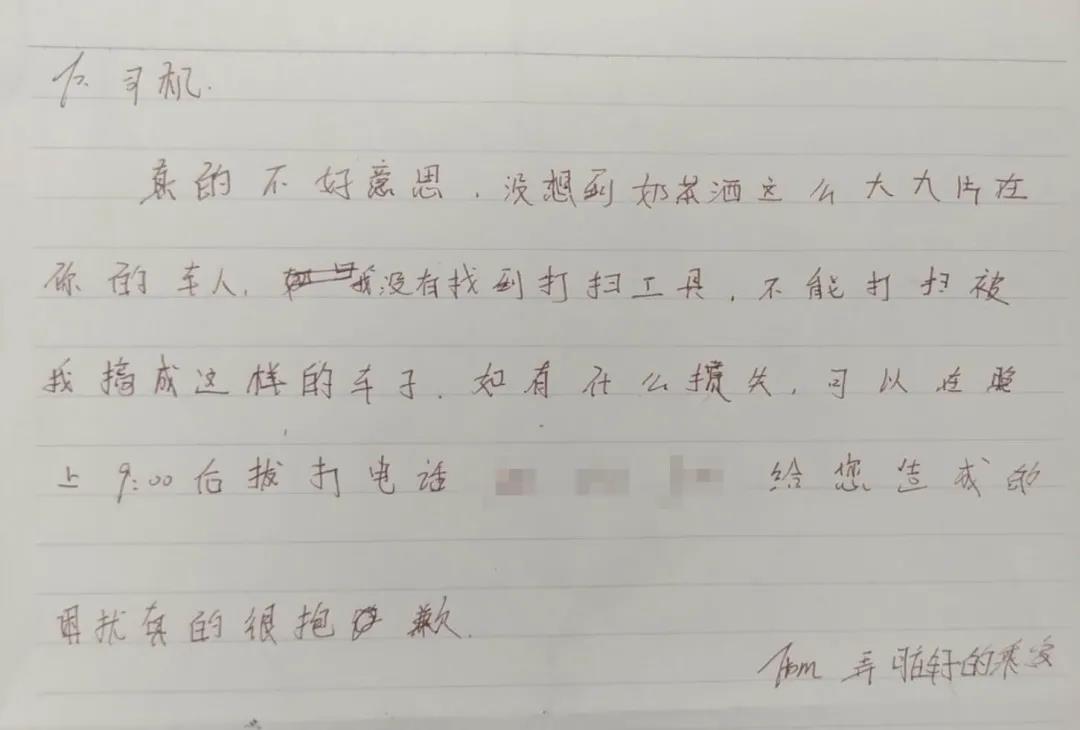 這封信筆跡稚嫩,卻無比真誠。原來是當(dāng)天早上上學(xué)高峰期,一名12歲的女孩不小心把奶茶灑到了公交車上。“早上到鐘吾國際學(xué)校站臺時,一個小女孩跑到我面前跟我說叔叔對不起,我不小心把車弄臟了。我沒多想就說不礙事的,你快上學(xué)去吧。到站后才發(fā)現(xiàn)這張暖人心的字條。”季輝回憶時說道。“這孩子不僅誠實,而且還勇敢、有擔(dān)當(dāng)。在沒有被別人發(fā)現(xiàn)的情況下,能主動站出來承認(rèn)過失,很多大人都不一定能做到。”