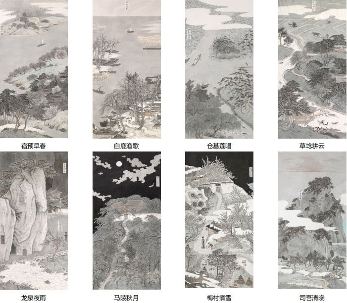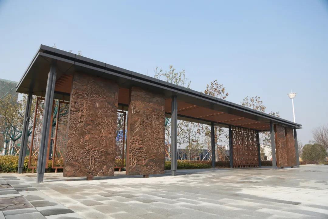 玖酒飄香浮雕的東西兩側(cè),分別設(shè)計了長29米、高3.9米的文化長廊,其上各鑲嵌了四幅宿遷歷史人文美景雕板,由國家一級美術(shù)師、宿遷市政協(xié)副主席、民盟市委主委丁立江先生牽頭,會同江蘇省作家協(xié)會理事、宿遷市作家協(xié)會主席韓玉喜,中國書法家協(xié)會會員、江蘇省書法家協(xié)會理事、宿遷市書法家協(xié)會主席張守躍,中國美術(shù)家協(xié)會會員郭鑫共同完成,每幅圖樣的創(chuàng)作都一一對應(yīng)前人留下的詩句。相傳“宿遷八景”出現(xiàn)于唐代,首載明萬歷《宿遷縣志》,以后續(xù)修,皆有記載。“宿遷八景”即為:“宿預(yù)早春、白鹿?jié)O歌、倉基蓮唱、草埝耕云、龍泉夜雨、馬陵秋月、梅村煮雪、司吾清曉”共八處風(fēng)光。“八景”各具特色,景象殊奇,歷代以來,項屬之地文人雅士相聚于“八景”之地,曲水流觴,迎風(fēng)弄月,留下了眾多文化典故。