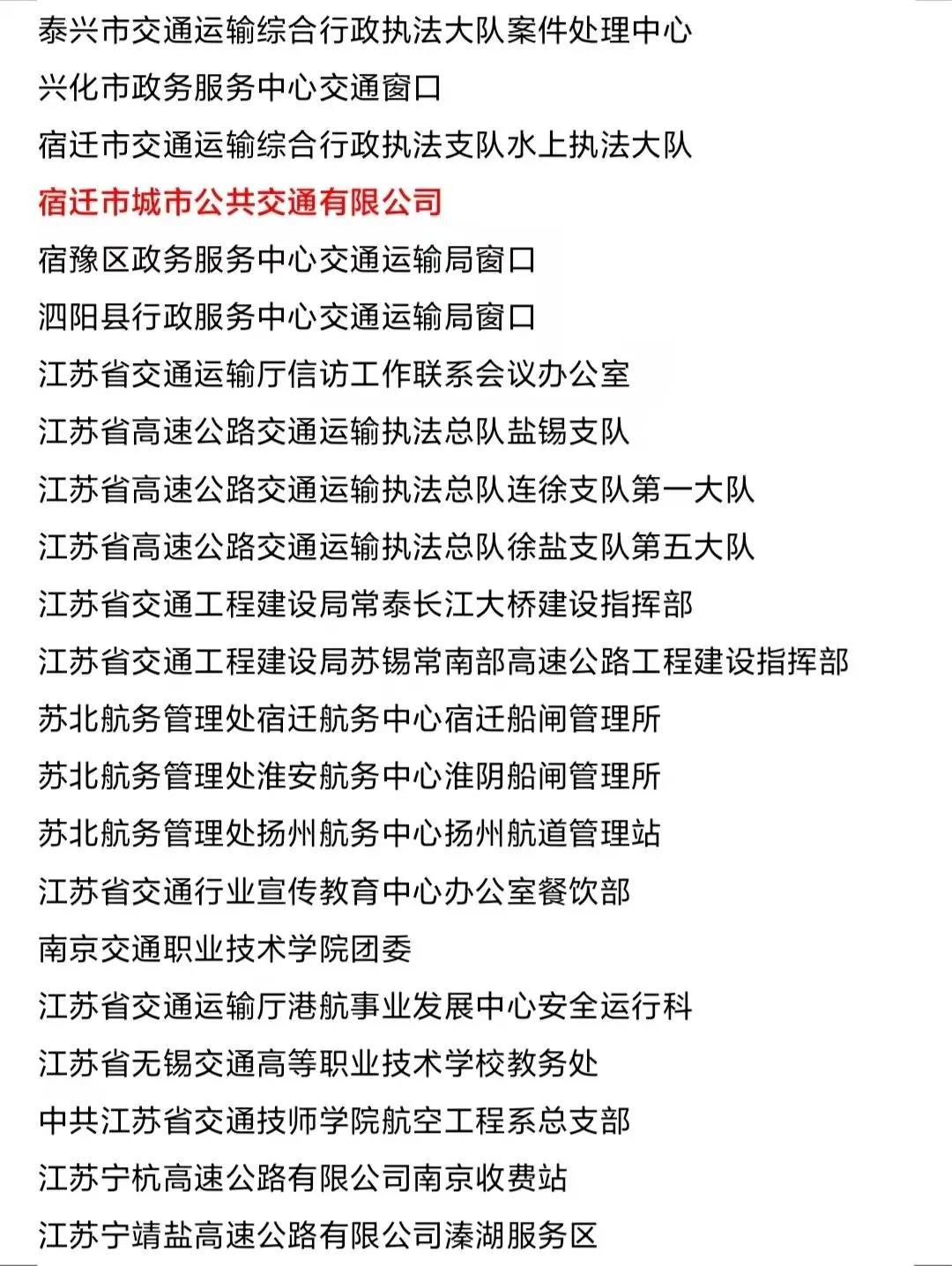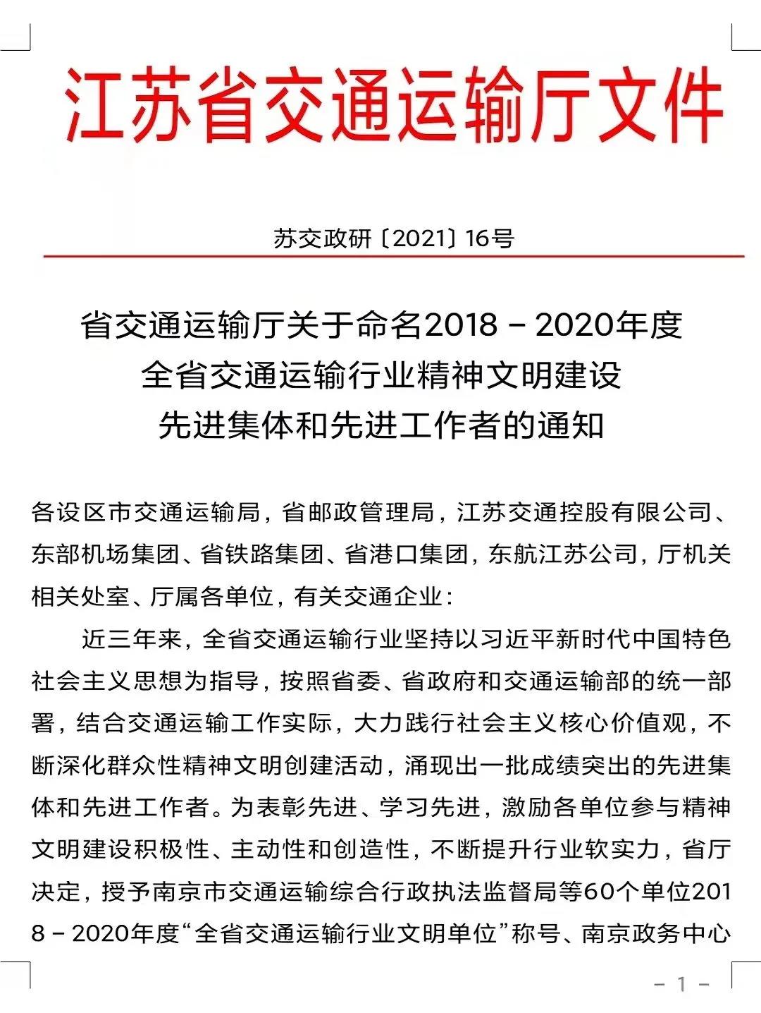 近日,江蘇省交通運(yùn)輸廳印發(fā)《2018-2020年度全省交通運(yùn)輸行業(yè)精神文明建設(shè)先進(jìn)集體和先進(jìn)工作者的通知》,授予公交公司“2018-2020年度全省交通運(yùn)輸行業(yè)精神文明建設(shè)先進(jìn)集體”稱號(hào)。