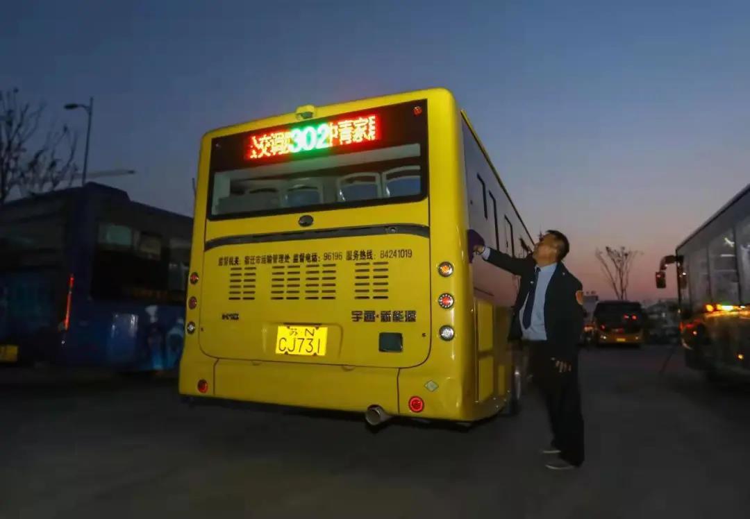 5點半,302路公交車的車牌燈準(zhǔn)時亮起,一個身影進(jìn)出車廂,熟練地逐項檢查電池電量、四輪胎壓、雨刮器等,測試剎車、離合、制動器,確保車輛性能一切正常后拿起抹布和拖把,麻利地將車輛內(nèi)外打掃干凈。