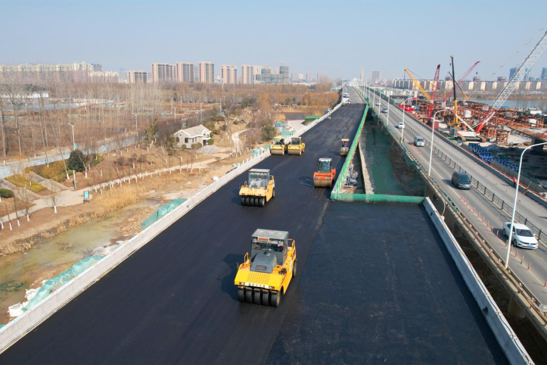 【高鐵公司】項(xiàng)目建設(shè)再提速,北京路快速化改造工程運(yùn)河三號橋引橋順利完成瀝青攤鋪