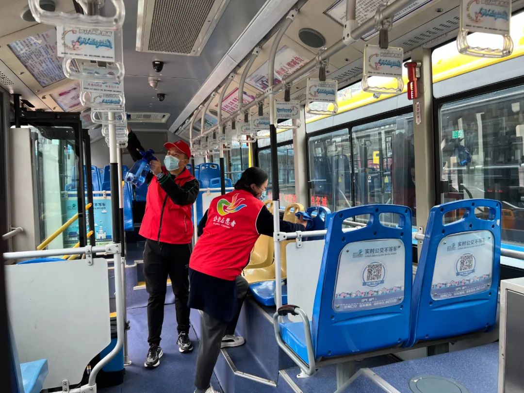 公交公司各場(chǎng)站工作人員,嚴(yán)格落實(shí)落細(xì)疫情防控舉措,對(duì)公交車廂進(jìn)行全面消毒,對(duì)車載設(shè)施設(shè)備等重點(diǎn)部位進(jìn)行深度消殺,及時(shí)清理場(chǎng)站衛(wèi)生,做到不留死角、不漏盲區(qū)、不存隱患,確保車輛狀況良好、場(chǎng)站衛(wèi)生整潔。