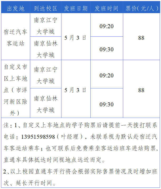 【宿汽集團】宿遷“五一”校園直通車來了!免費上門接送!