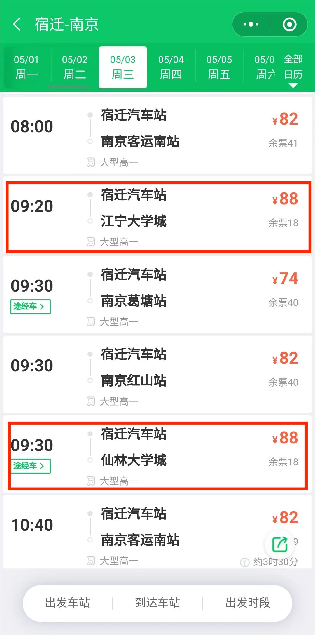 不必擔心!為方便宿遷學子假期返校,5月3日,宿遷汽車客運站推出直達南京仙林大學城、江寧大學城兩條班線,同學們可以直接享受從家到大學城的一站式體驗,也可以選擇赴客運站乘坐,免去中途換乘煩惱,實現(xiàn)家到學校的“一車直達”!