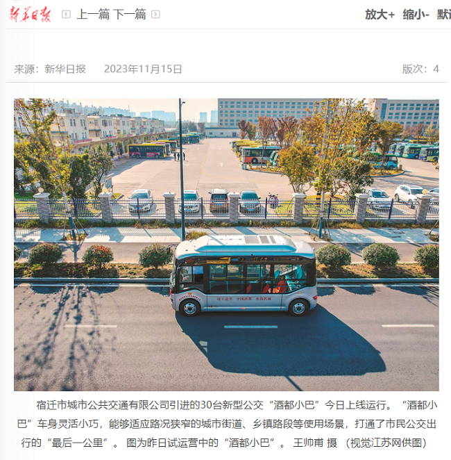 《新華日報》報道宿遷公交“酒都小巴”上線