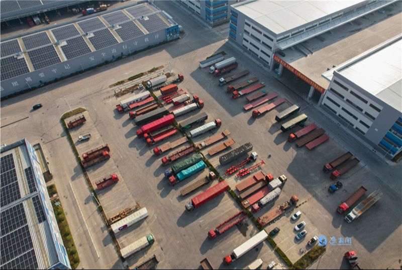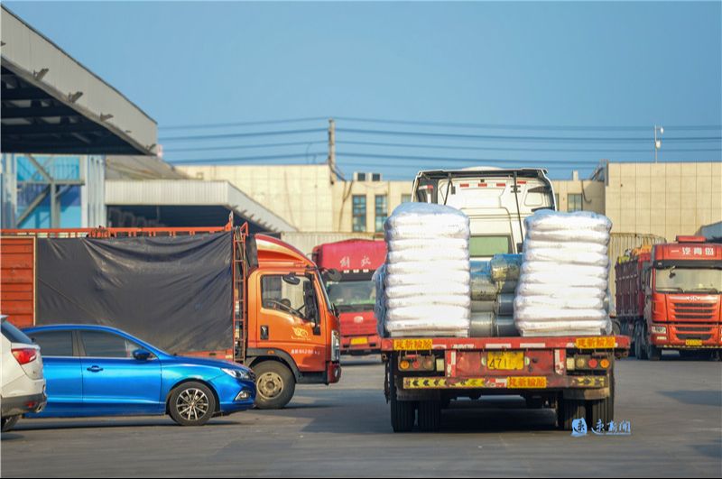 近日,宿遷經(jīng)開區(qū)江蘇通湖物流園內(nèi),工作人員正在有序作業(yè),運(yùn)輸車輛來回穿梭,一派繁忙景象。