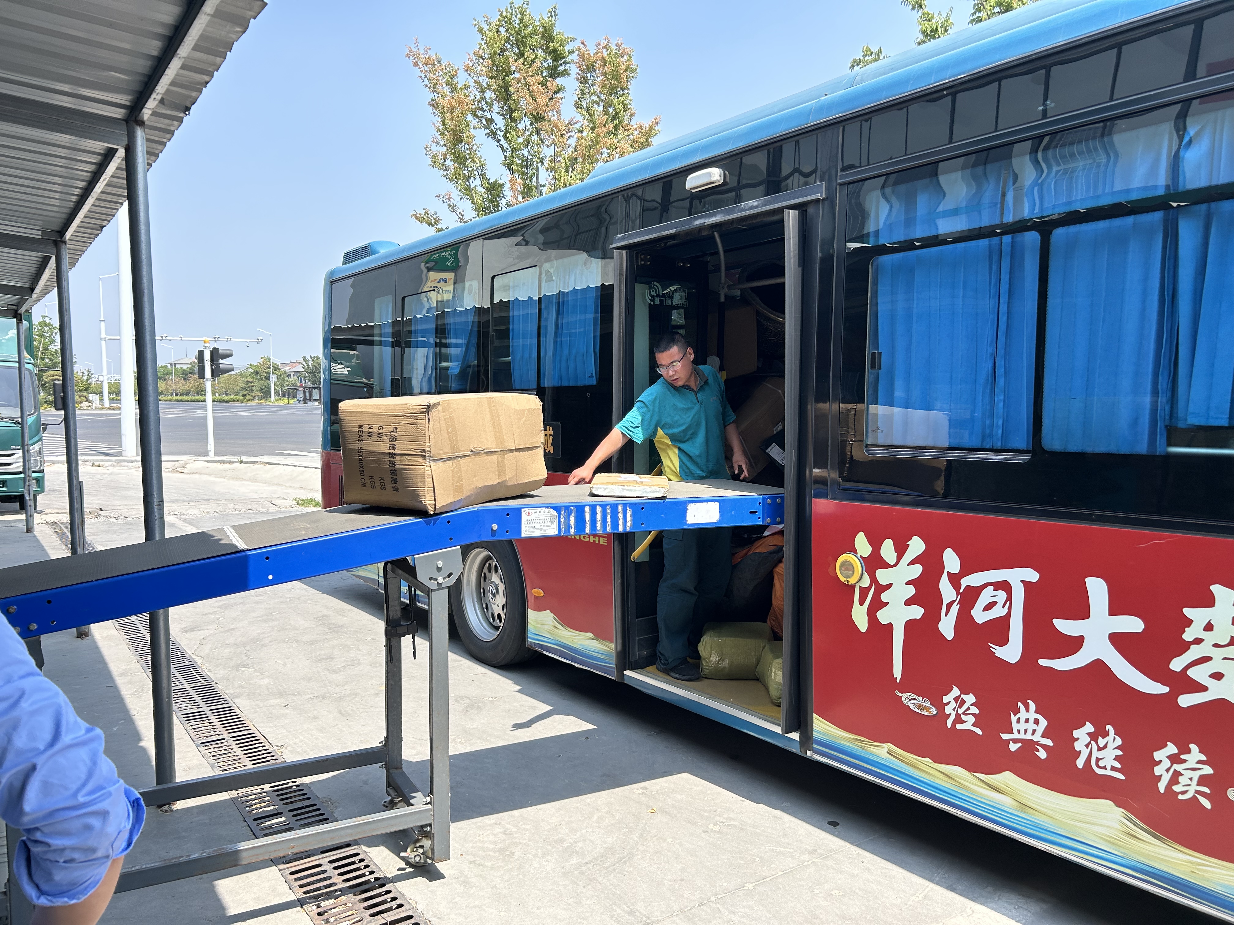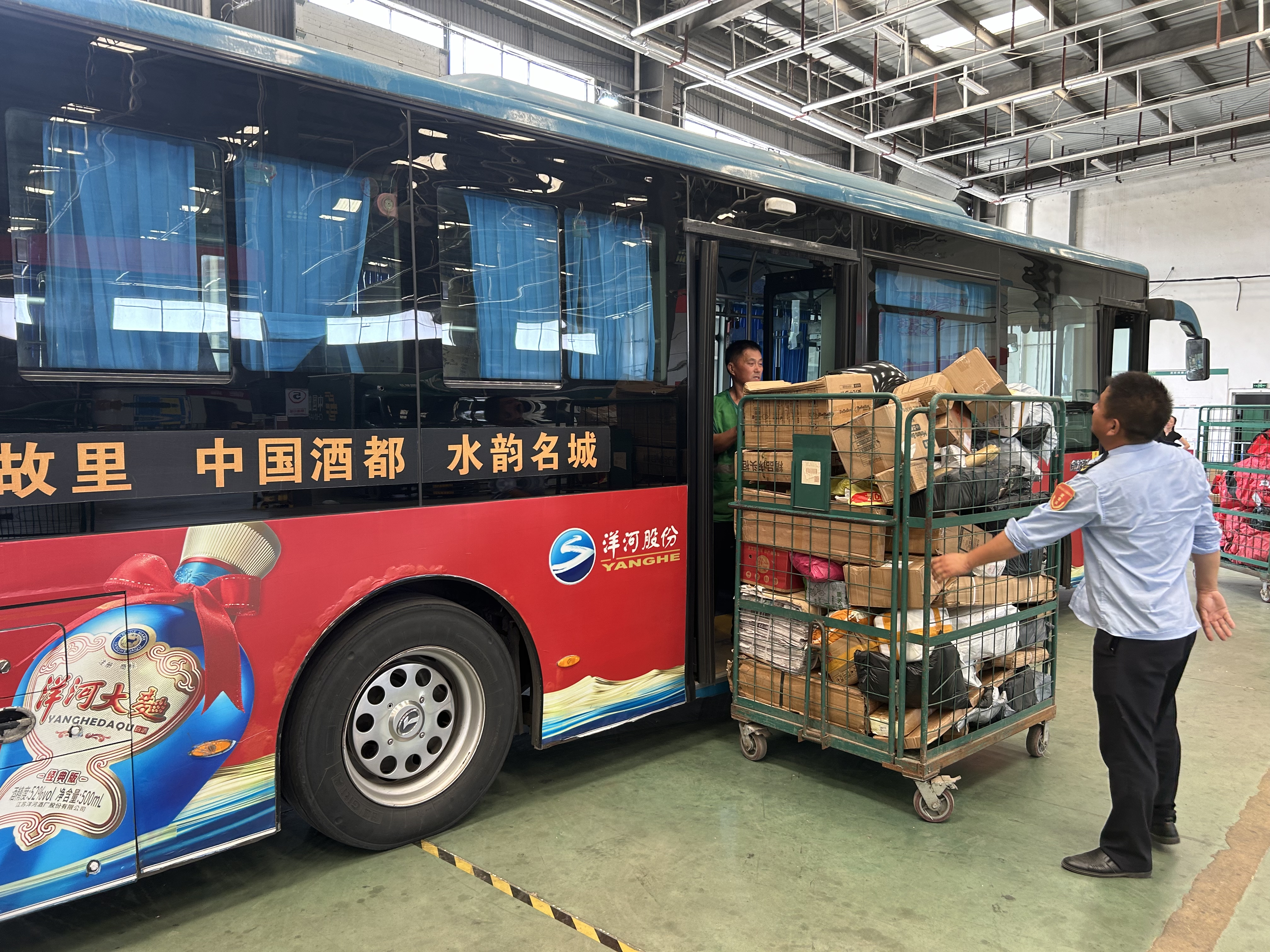 當(dāng)日,在宿遷市宿城區(qū)寄遞物流共配中心,傳送帶上郵件有序流轉(zhuǎn),工作人員細(xì)致清點(diǎn)包裹,一派熱火朝天的景象。與往日不同的是,承擔(dān)運(yùn)輸任務(wù)的由郵政貨車變成了公交車。