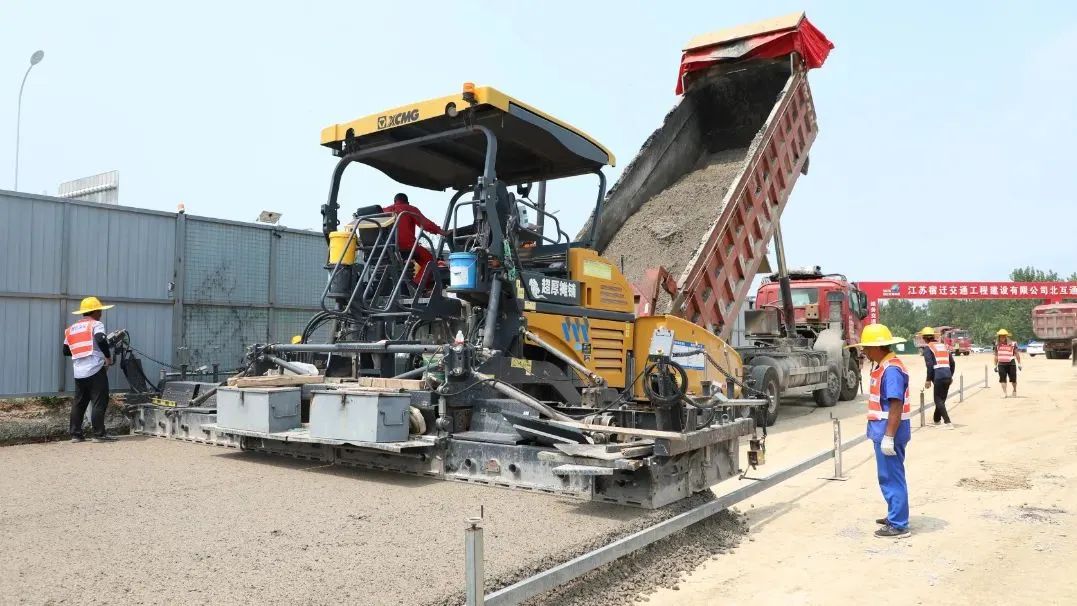 在北互通項目現(xiàn)場,水穩(wěn)攤鋪工作正在如火如荼地進行。工人們奮戰(zhàn)一線,不畏炎炎酷暑,保質保量地推動著項目的施工進度。