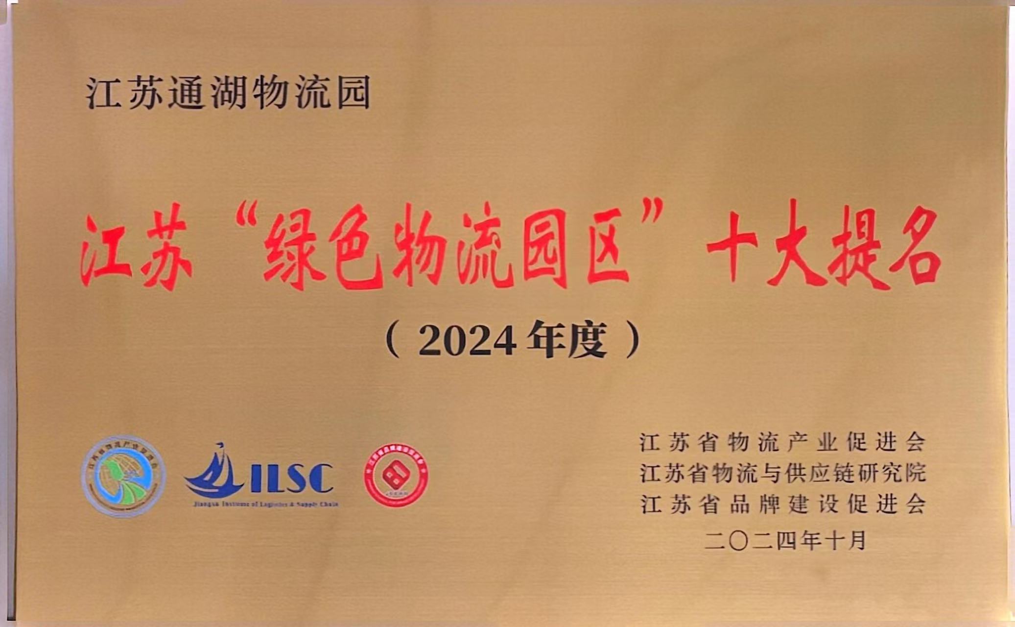【通湖物流園】通湖物流園榮獲2024年度江蘇“綠色物流園區(qū)”十大提名
