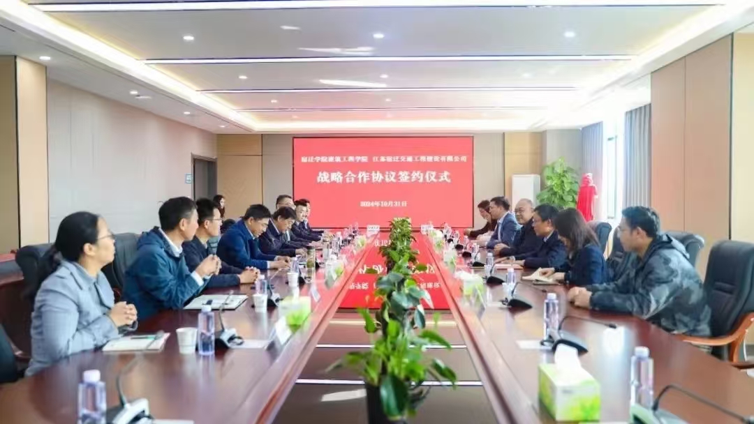 10月31日,宿遷交建與宿遷學(xué)院建筑工程學(xué)院簽署戰(zhàn)略合作協(xié)議,并舉行“交通基礎(chǔ)設(shè)施低碳材料與智能建造工程研究中心”揭牌儀式。學(xué)院黨委書記郭振宇、院長朱方之,宿遷交通集團(tuán)副總經(jīng)理黃雪林出席活動(dòng)。