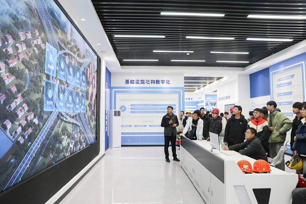 在參觀宿遷大道快速化改造工程信息中心,師生們近距離接觸了現(xiàn)代化的信息化管理系統(tǒng)。宿遷交建利用智能化手段實(shí)時(shí)監(jiān)控施工進(jìn)度與質(zhì)量安全的創(chuàng)新舉措,令在場(chǎng)師生們深受啟發(fā)。
