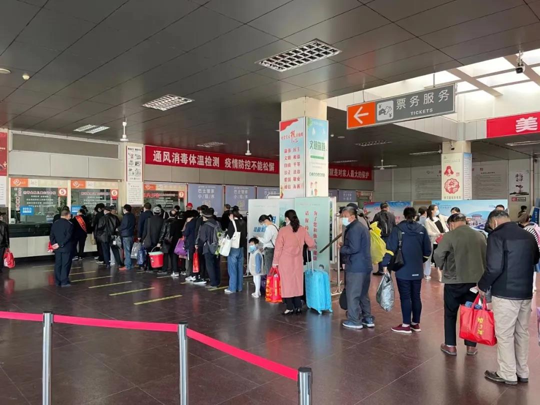 宿遷汽車客運站旅客正在排隊購票