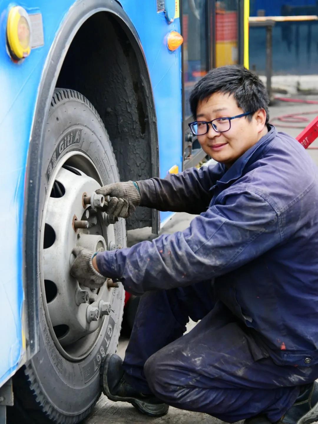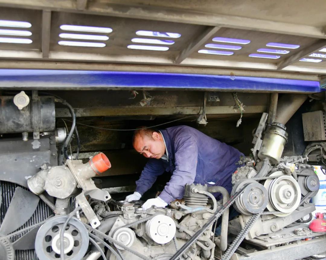 公交公司維修人員正在排查、修理故障車輛