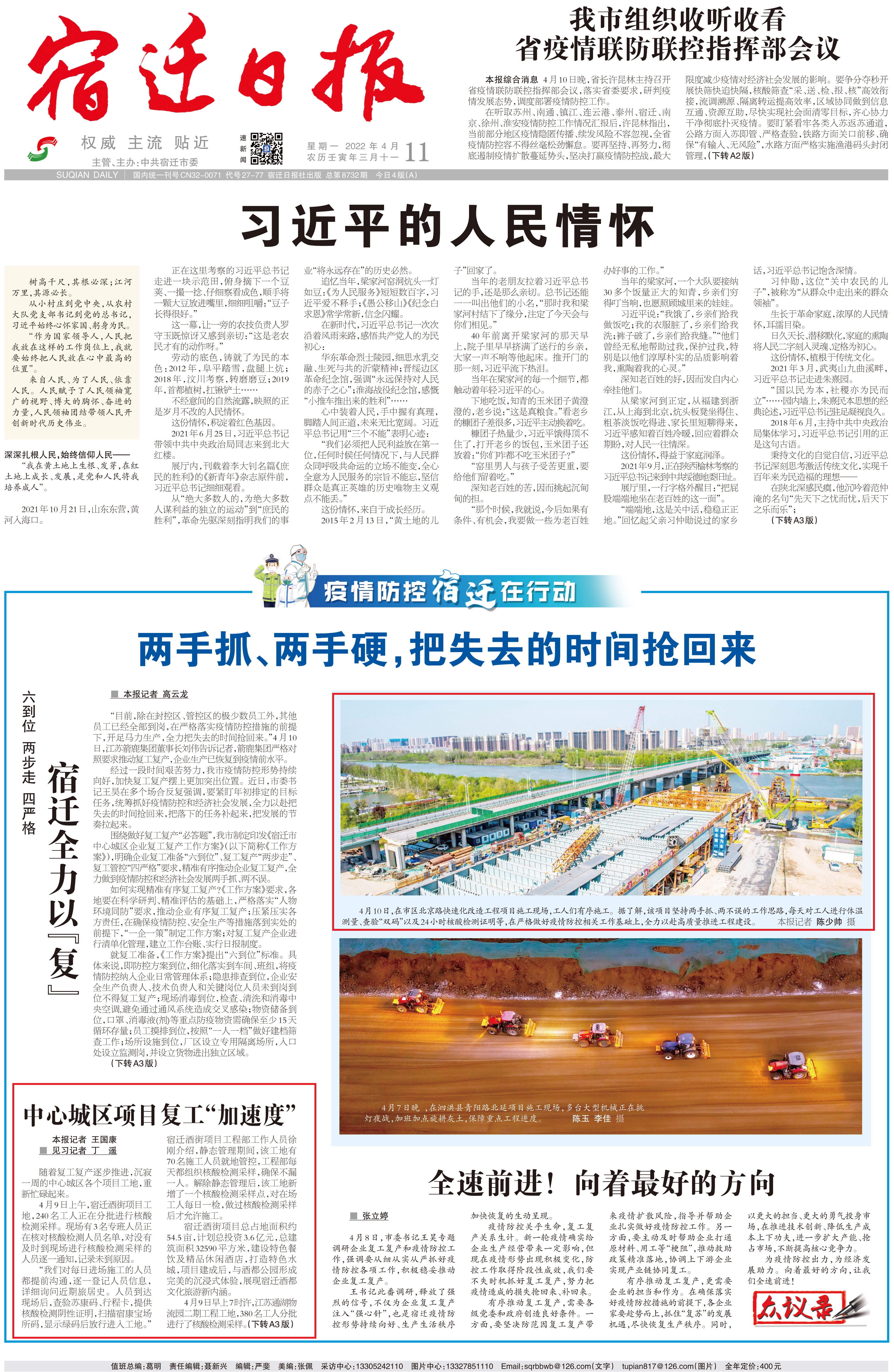 《宿遷日?qǐng)?bào)》頭版關(guān)注宿遷交通集團(tuán)重點(diǎn)工程項(xiàng)目復(fù)工復(fù)產(chǎn)情況