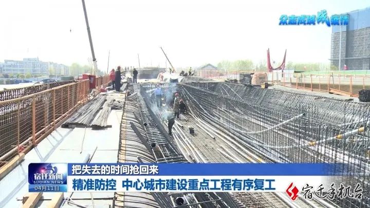 4月11日,《宿遷新聞》以《把失去的時間搶回來 | 精準防控 中心城市建設重點工程有序復工》為題,關注北京路快速化改造工程復工復產情況。