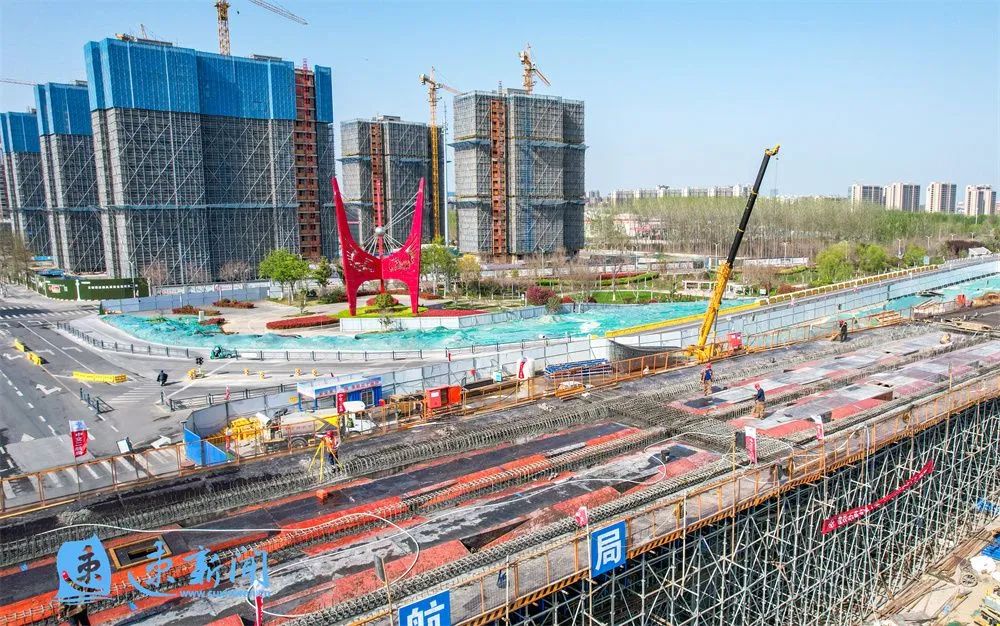 北京路快速化改造工程累計完成鉆孔灌注樁92.8%、承臺81.7%、墩柱澆筑81.7%、蓋梁澆筑79.6%、現(xiàn)澆梁36%、鋼箱梁25%、路基挖方35%、路基填方42%、水泥攪拌樁77%、雨污水管道35%、預制方樁63.8%。