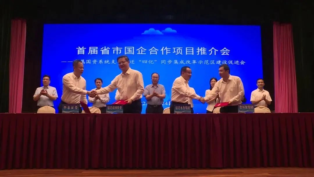 5月24日,首屆省市國(guó)企合作項(xiàng)目推介會(huì)——省屬國(guó)資系統(tǒng)支持宿遷“四化”同步集成改革示范區(qū)建設(shè)促進(jìn)會(huì)在南京成功舉辦。部分省屬企業(yè)與宿遷國(guó)企現(xiàn)場(chǎng)簽訂9項(xiàng)合作協(xié)議,省國(guó)資委一級(jí)巡視員彭向峰,宿遷市委常委、常務(wù)副市長(zhǎng)張明康分別代表省國(guó)資委、市政府講話,市政協(xié)副主席、集團(tuán)總經(jīng)理史明霞,集團(tuán)副總經(jīng)理黃雪林參加活動(dòng)。