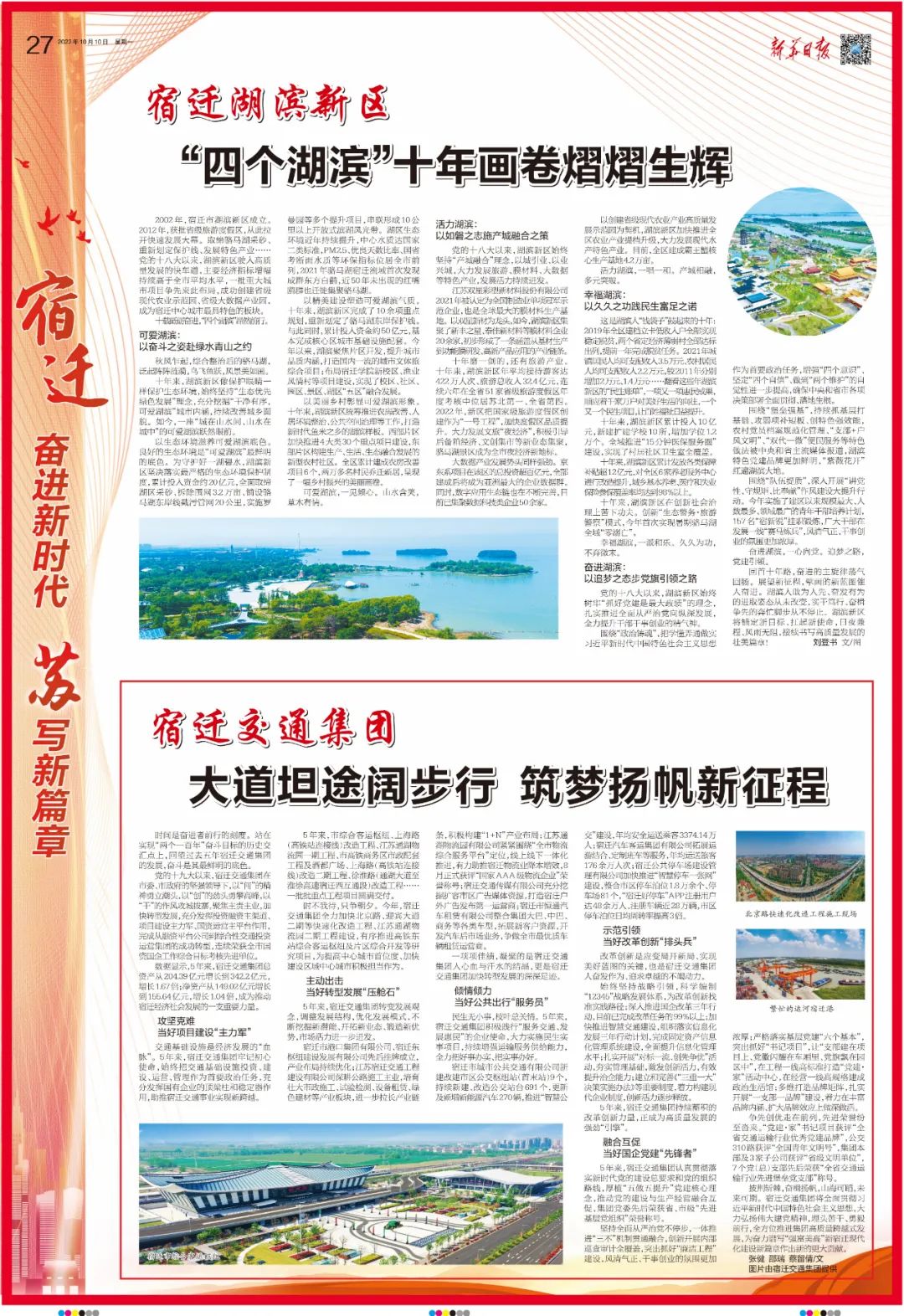 10月10日,《新華日報》以《宿遷交通集團:大道坦途闊步行 筑夢揚帆新征程》為題,專題報道了集團過去五年從融資平臺公司到綜合性交通投資運營集團成功轉(zhuǎn)型的發(fā)展歷程。全文報道如下: