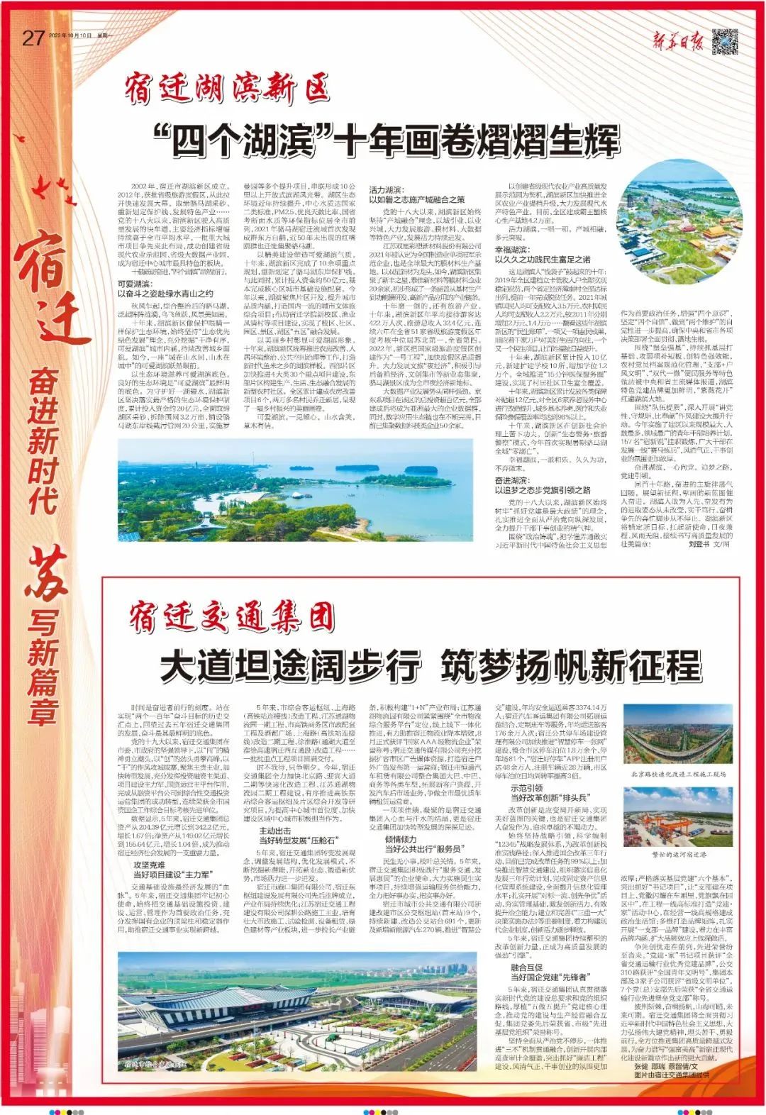 10月10日,《新華日報》以《宿遷交通集團(tuán):大道坦途闊步行 筑夢揚(yáng)帆新征程》為題,報道了集團(tuán)過去五年從融資平臺公司到綜合性交通投資運(yùn)營集團(tuán)成功轉(zhuǎn)型的發(fā)展歷程。