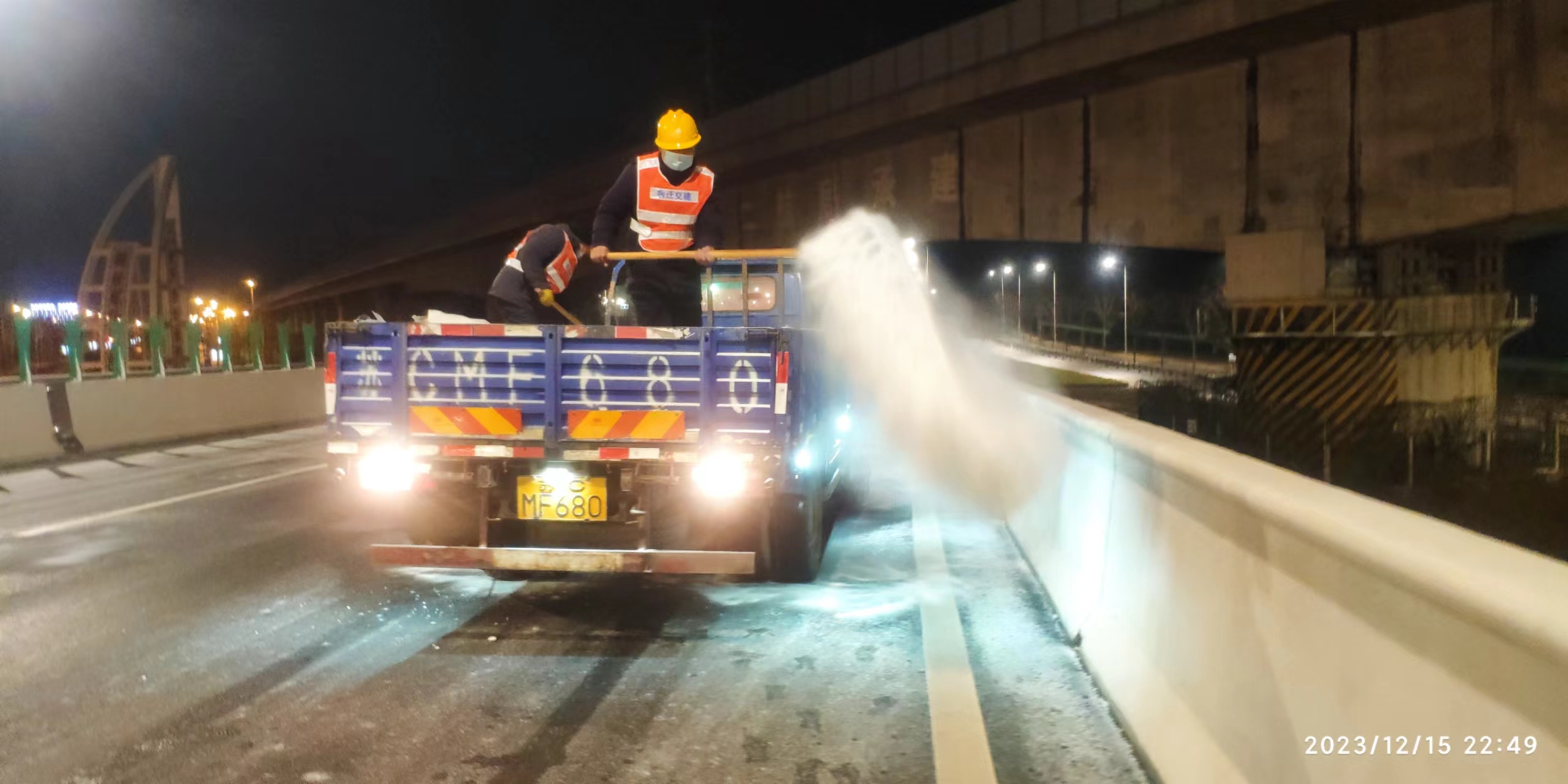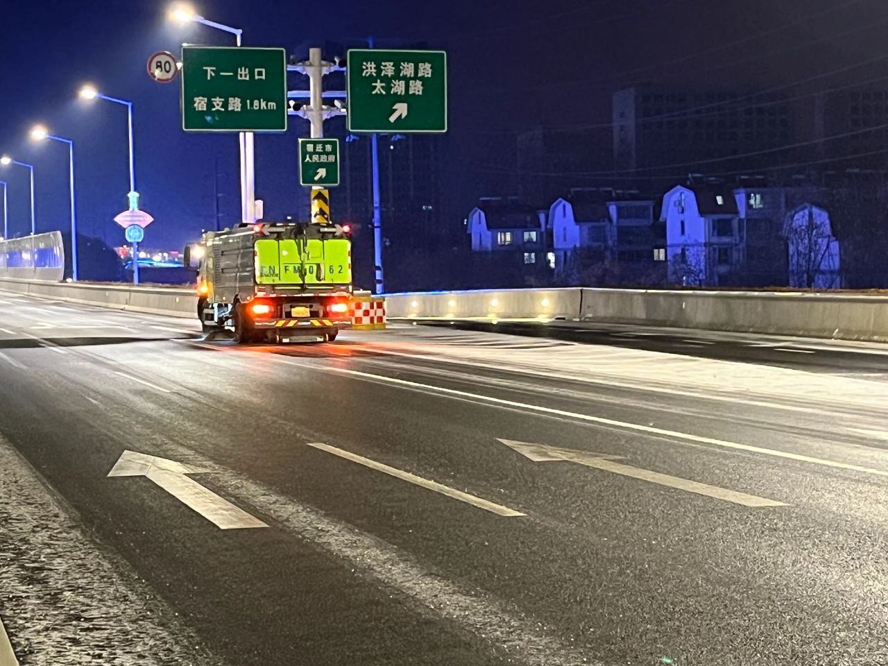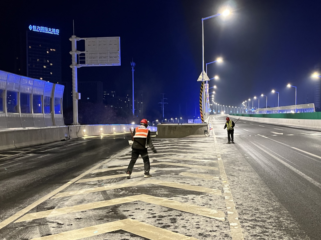 高鐵公司立即啟動應(yīng)急預(yù)案,組織養(yǎng)護單位迅速至北京路、迎賓大道二期、洋河大道、上海路等路段開展融雪除冰工作;同時,聯(lián)合市公安局鐵騎大隊互動巡查,確保道路安全暢通。宿遷交建道路養(yǎng)護黨員突擊隊第一時間上路,通過撒布融雪劑、融雪鹽和擺放防滑料,及時破除清掃結(jié)冰、積雪路段。
