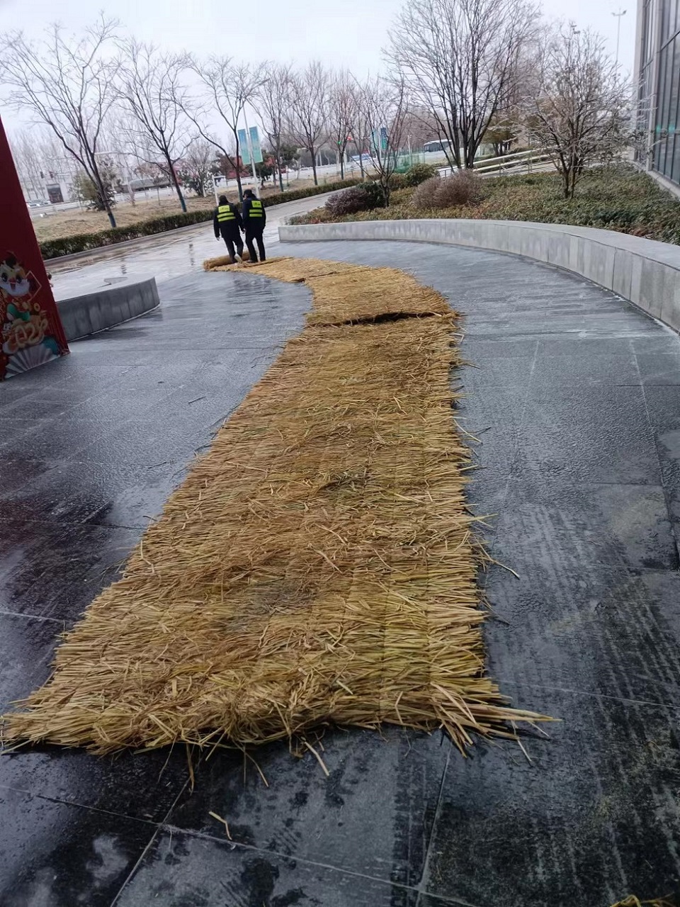 通湖物流園提前儲(chǔ)備防滑材料、融雪劑等應(yīng)急物資,在園區(qū)入口、坡道等重點(diǎn)路段鋪設(shè)防滑草墊,防止出現(xiàn)事故;做好園區(qū)內(nèi)物流企業(yè)安全宣教工作,督促企業(yè)提醒貨運(yùn)司機(jī)注意應(yīng)對(duì)嚴(yán)寒冰凍天氣,確保行車安全。