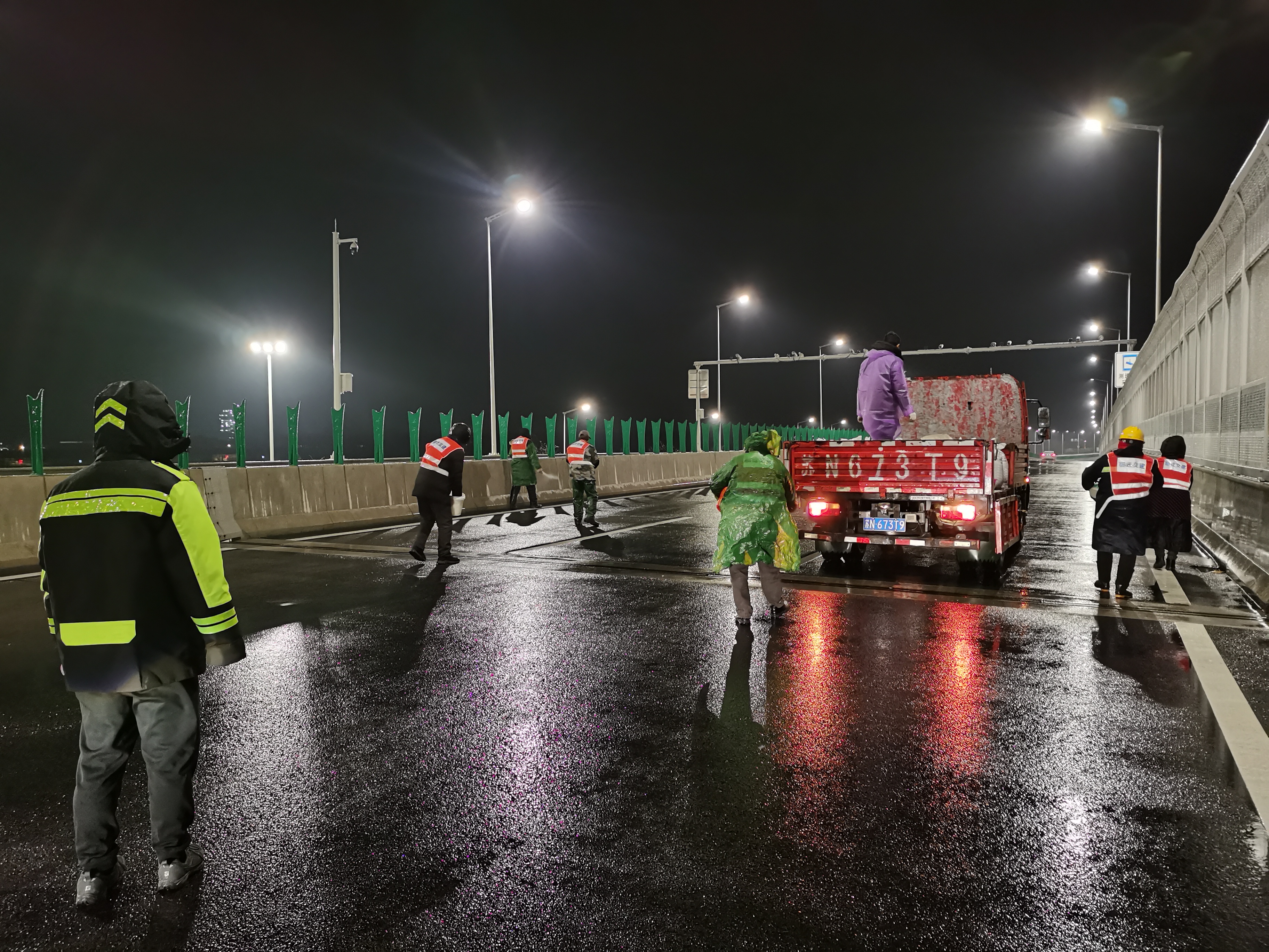高鐵公司召開工作布置會(huì)議,全面進(jìn)入應(yīng)急響應(yīng)和保障狀態(tài),對(duì)迎賓大道二期、北京路、上海路、洋河大道等管養(yǎng)路段24小時(shí)巡查和預(yù)防、養(yǎng)護(hù)處理,所有機(jī)械設(shè)備、人員全面進(jìn)入崗位。20日凌晨出動(dòng)巡查車、滾雪車、鏟雪車、融雪劑撒布機(jī)等機(jī)械設(shè)備54臺(tái)、應(yīng)急保障人員195名,采取機(jī)械為主、人工配合方式,對(duì)管養(yǎng)道路進(jìn)行融雪劑撒布,累計(jì)撒融雪劑150余噸。