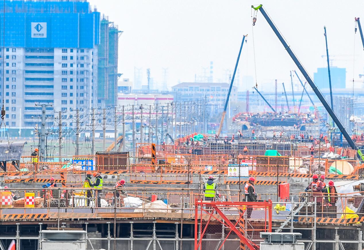 3月13日,在宿遷市酒都路(原張家港大道一期)快速化改造工程現(xiàn)場,塔吊林立、機械轟鳴,工人正在緊張施工。架設(shè)腳手架、墩柱澆筑、鋼筋綁扎、混凝土澆筑作業(yè)交替進行,到處是一派熱火朝天的景象。切割、焊接、敲打聲此起彼伏,吊車、塔吊、挖掘機、裝載機馬力全開,正在有序作業(yè)。踏著春天的腳步,來自各地的工人在宿遷奏響“春之曲”,項目踏春提速,步伐奮進激昂,生動詮釋了如何落實好高質(zhì)量發(fā)展、構(gòu)建好新的發(fā)展格局這一時代答卷。